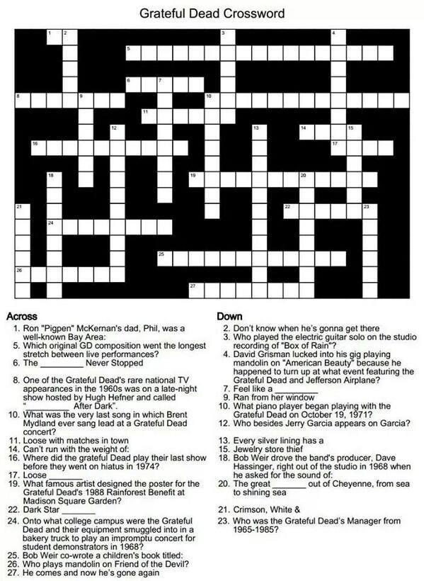 Grateful Dead Crossword Puzzle - Maybe you would like to learn more about one of these?. Maybe you would like to learn more about one of these? Check spelling or type a new query. We did not find results for: